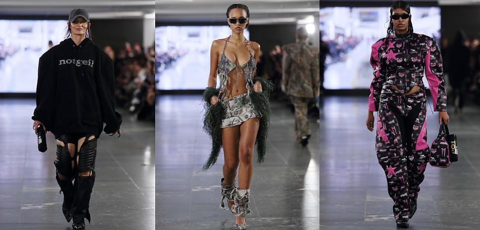 The collection was full of energy and contrasts. Realtree prints and custom monograms met pink tones, rhinestones, chain details, stretch Lycra, and vegan leather, crafting a visual story that was dynamic, provocative, and unapologetic. Sculptural cuts and couture-inspired designs introduced new silhouettes, pushing Namilia’s aesthetic in exciting new directions.