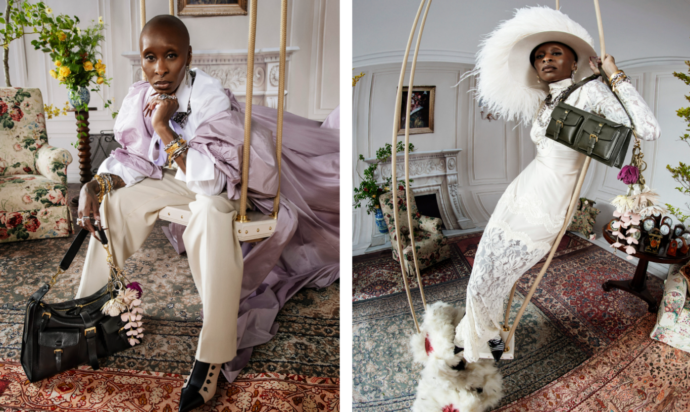 Photographed by Tim Walker and styled by Kate Phelan, the campaign stars Oscar-winning actor and Wicked lead Cynthia Erivo, who also sat down with designer and podcast host Recho Omondi for Mulberry’s Moments video series.