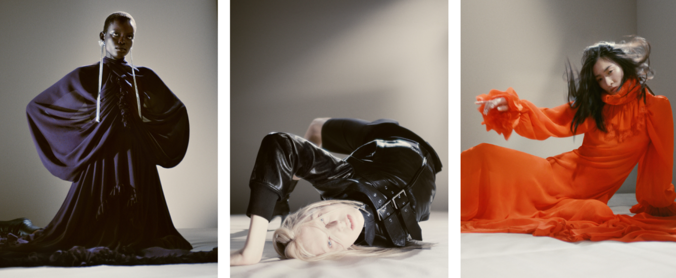 The campaign imagery radiates raw physicality and release, as models including Alex Consani, Athiec Geng, Chu Wong, and Libby Taverner appear bathed in spectral light. Clad in silk georgette, raw-cut lace, precision tailoring, and black lacquered leather, they embody a tactile, emotional celebration of instinct, liberation, and contemporary identity.